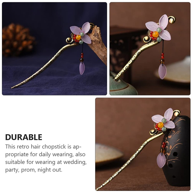 Lurrose Horquilla Hanfu Flor Palos De Pelo Chino Horquillas De Palillos Florales Para El Cabello Japonés Palos De Pelo Palos De Pelo Retro Pelo Pin Temperamento Perder Vara Vidrio