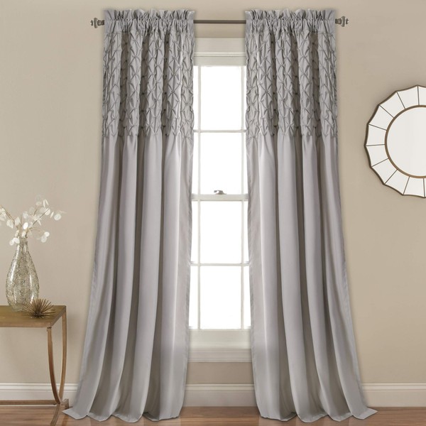 Lush Decor Bayview Curtains - Pintuck Textured Semi Sheer Window Panel Drapes Set for Living, Dining, Bedroom (Pair), 84" x 52", Gray