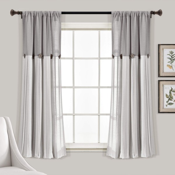 Lush Decor Linen Button Window Curtain Panel, Single, 15.8" W x 24.8" L, Gray & Off-white - Country Curtains - Color Block Modern Farmhouse Curtains For Living Room, Bedroom & Dining Room