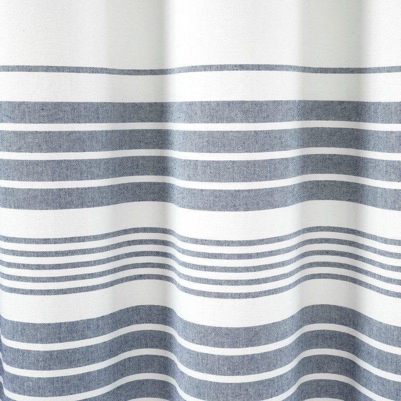 Lush Decor Nantucket Yarn Dyed Cotton Tassel Fringe Shower Curtain, 72" x 72", White & Navy