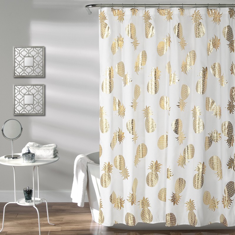 Lush Decor Pineapple Toss Shower Curtain, 72" x 72", Gold