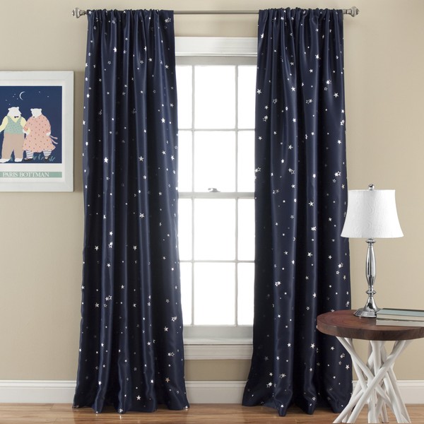 Lush Decor Light Filtering, Energy Efficient (Pair), Navy Star Blackout Curtains-Window Panel Set, 52" W x 84" L, 2 Count