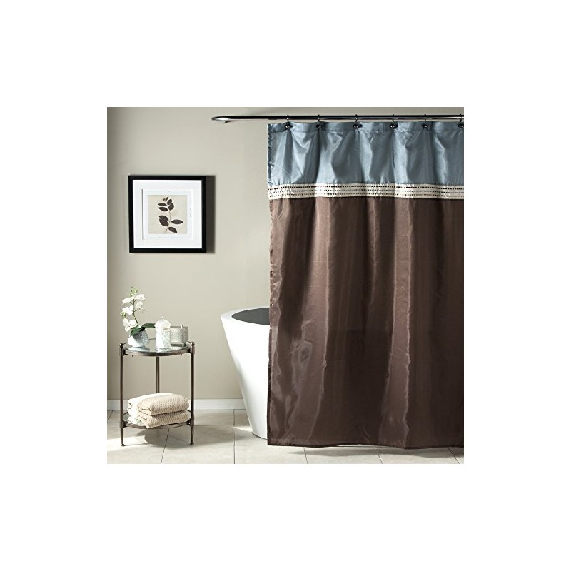 Lush Decor Terra Color Block Shower Curtain Fabric Striped Neutral Bathroom Decor, 72" x 72", Blue & Chocolate