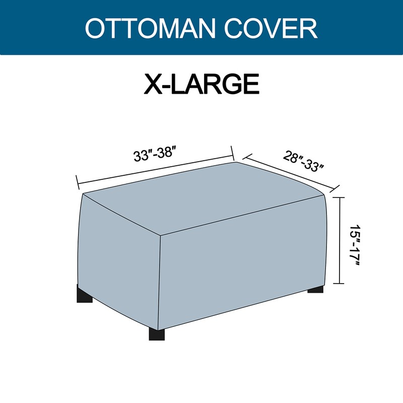 - GREAT FIT: Ottoman cover suitable for most rectangular and 5 sided storage ottomans. Large size with 33”-38” length, 28”-33” width, 15”-17” height. Please measure before purchasing