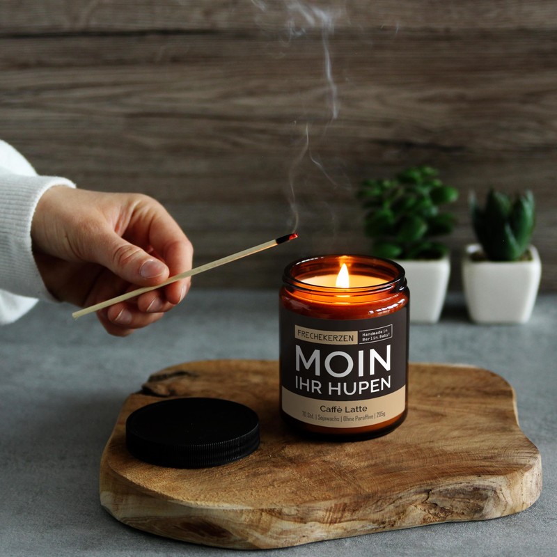 - SOJAWACHS DUFTKERZE: Kerzengröße: 9,2 x 7,3 cm; Gesamtgewicht: 420g. Jede Kerze wird schmunzelnd von uns in Berlin hergestellt. Unsere Kerzen bestehen aus 100 % natürlichem Sojawachs und haben einen Baumwoll-Docht.