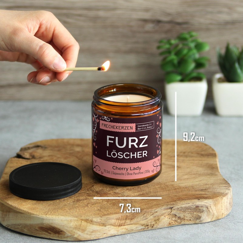 - SOJAWACHS DUFTKERZE: Kerzengröße: 9,2 x 7,3 cm; Gesamtgewicht: 420g. Jede Kerze wird schmunzelnd von uns in Berlin hergestellt. Unsere Kerzen bestehen aus 100 % natürlichem Sojawachs und haben einen Baumwoll-Docht.