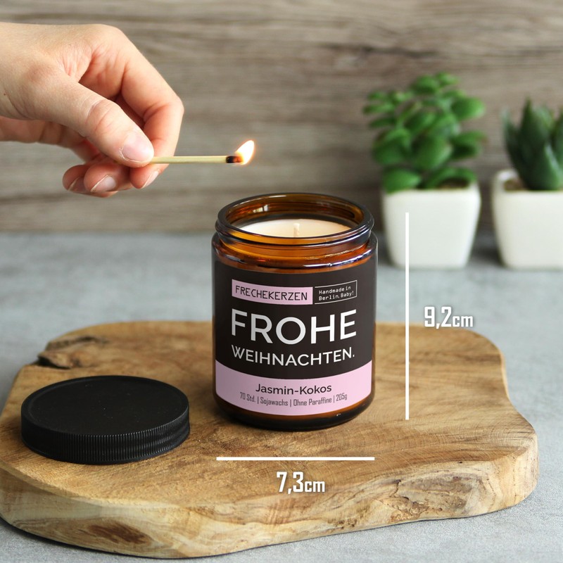 Lustige Duftkerze mit Spruch zu Weihnachten | Handgemacht aus Sojawachs | In Geschenkbox | Nachhaltiges Weihnachts Geschenk Idee Deko Tischdeko Dekoration |Jasmin-Kokos