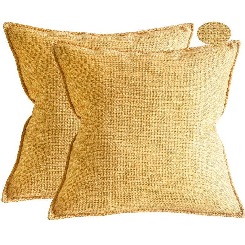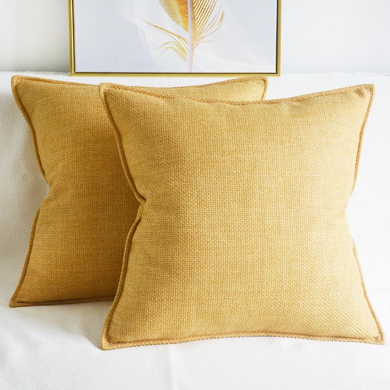 Lutanky Linen Cushion Covers Pack of 2 Elegant Square Throw Pillow Cases for Sofa Bedroom Home Decoration with Invisible Zipper Yellow (45x45cm,2 Pieces)