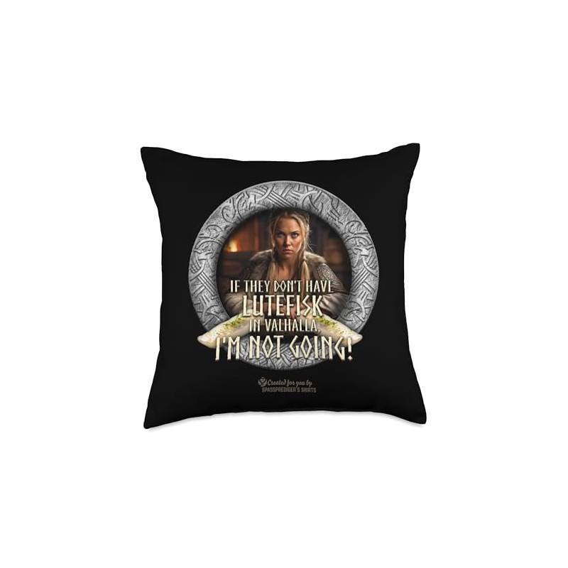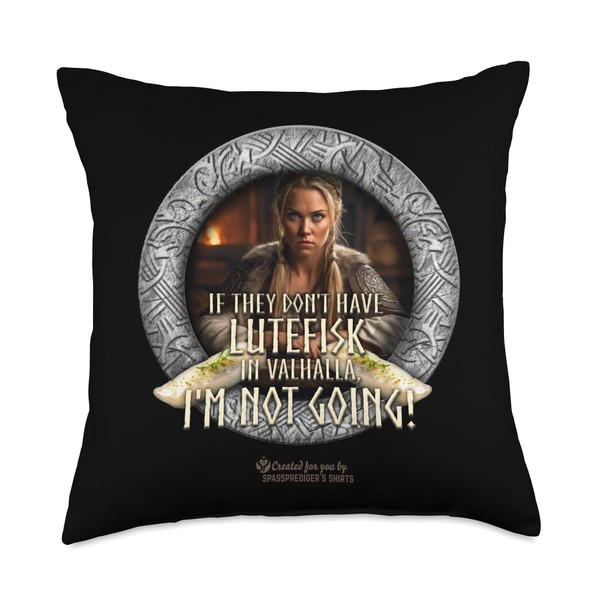 Lutefisk in Valhalla Gutsy Shield Maiden and Lutefisk Throw Pillow