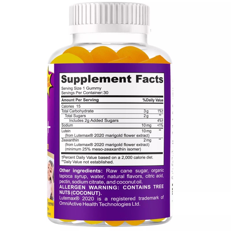 Formulated with Lutein and Zeaxanthin, powerful antioxidants that help protect the eyes from harmful blue light and support clear vision. Just 1 gummy provides over lutein and zeaxanthin making these among the most potent kids gummy vitamins for eyes for kids vision and clarity support with natural flavors.