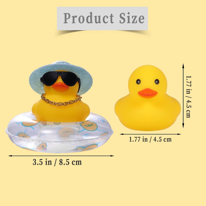 - Unique Design: This yellow decorative duck is designed in five parts, including sunglasses, sun hat, gold necklace, swimming ring and duck, bringing you infinite joy. The duck also squeaks, which adds to its cuteness