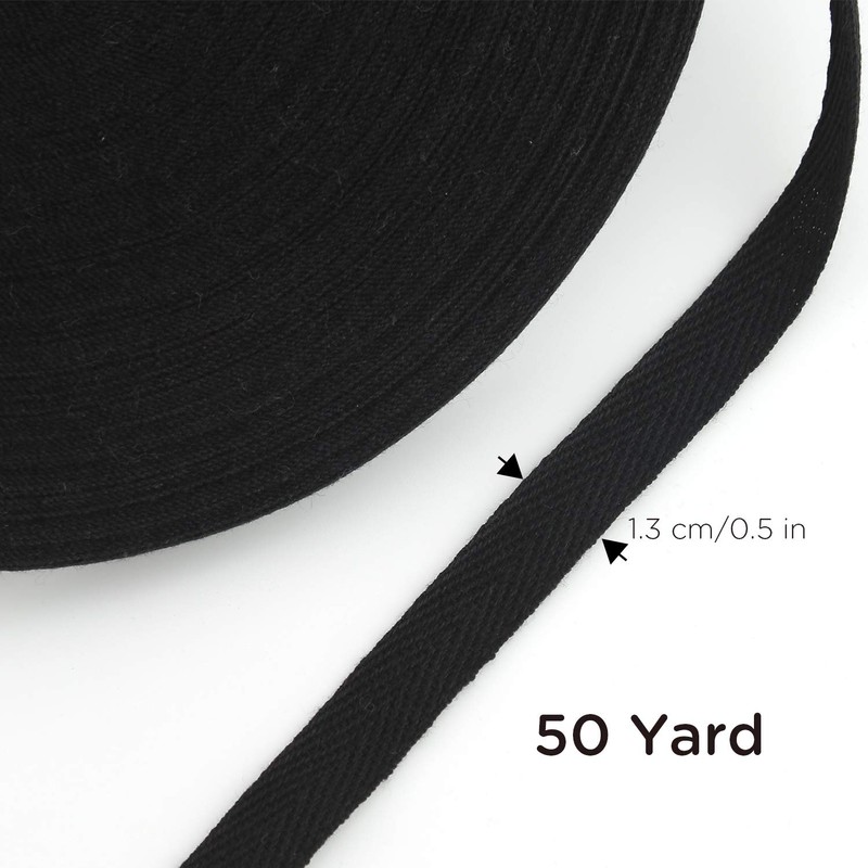 LUTER 50 Yard Twill Tape Ribbon, Herringbone Tape Ribbon Natural Cotton Webbing Tape Bias Binding Tape for DIY Crafts Sewing Supplies (Black, 1/2 Inch)