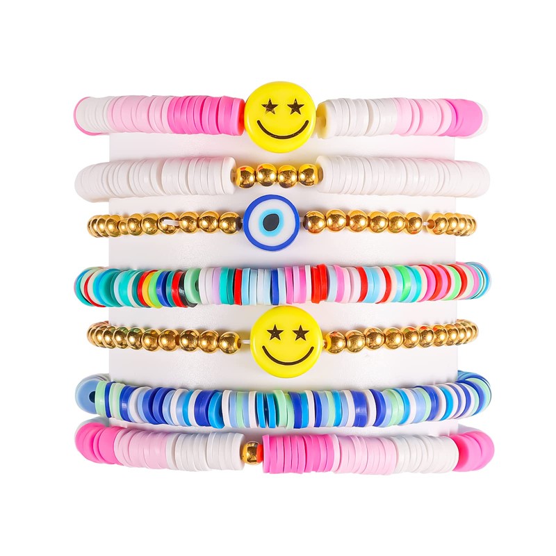 - Package Content: You will receive 7 pieces of colorful surfer bracelets in different elements, including colored clay, smiles, stars, faux pearls, evil eyes and so on. Unique and attractive.