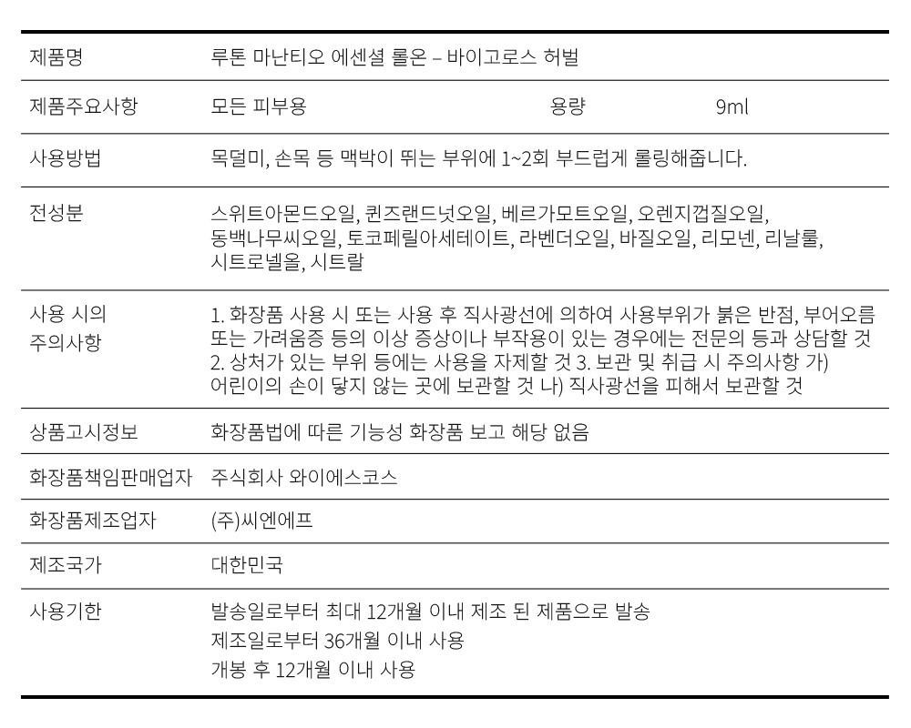 루톤 마난티오 에센셜롤온 9ml (바이고로스허벌)