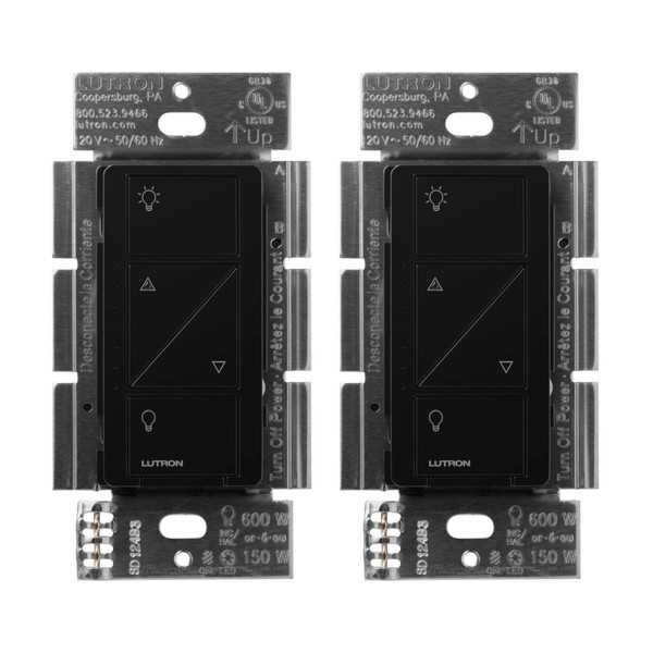 Lutron Caseta Original Smart Dimmer Switch (Lutron Smart Hub Required), for LED Lights, 150 Watt, Single-Pole/3-Way, No Neutral Required, PD-6WCL-BL-2-Pack, Black