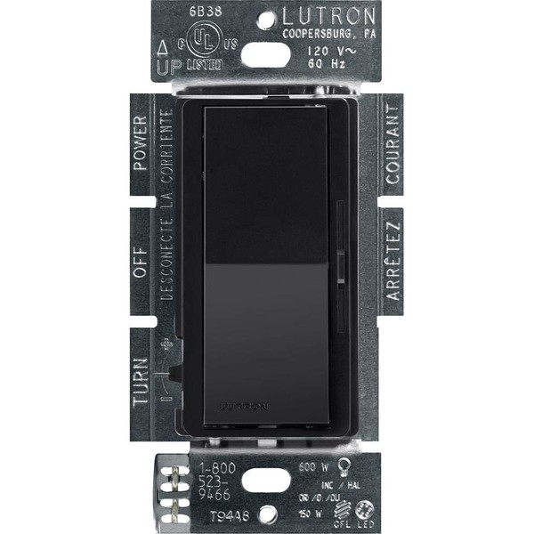 Lutron Diva LED+ Dimmer Light Switch for Dimmable LED, Halogen, and Incandescent Bulbs, 150 Watt, Single-Pole or 3-Way, DVCL-153P-BL, Black