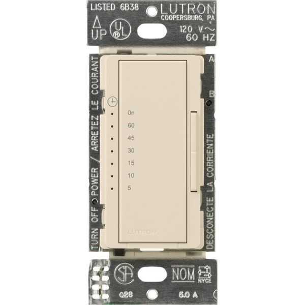 Lutron Maestro Countdown Timer Switch for Fans and Lights, Timer Switch for Lights, 3A/150-Watt LED Bulbs, Single-Pole/Multi-Location, MA-T51MN-LA, Almond