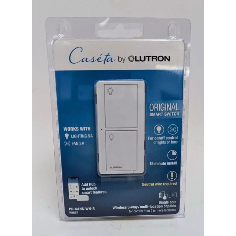 Lutron New Lutron Caséta Smart Switch Wireless 120V White PD-5ANS-WH-R Single Pole 3way