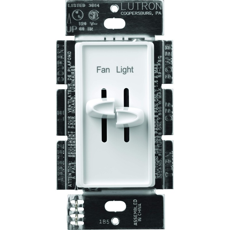 - Includes (1) dual slide-to-Off fan control and dimmer; coordinating wallplate sold separately
