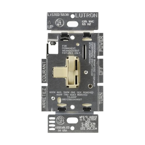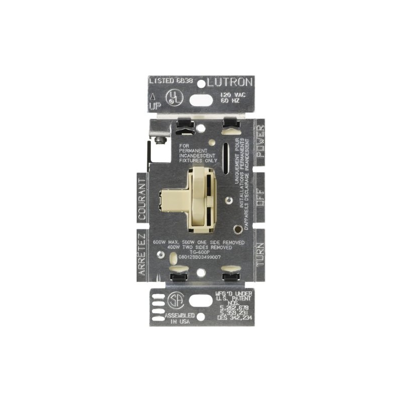 Lutron Toggler Dimmer Switch for Halogen and Incandescent Bulbs, Single-Pole, TG-600PH-IV, Ivory