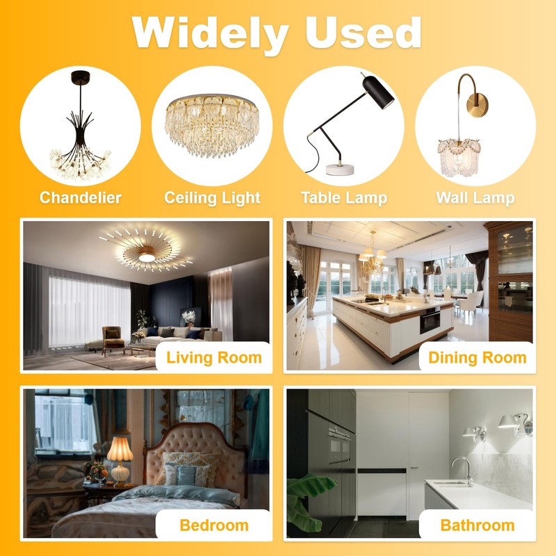 - [Vielf?ltige Verwendungsm?glichkeiten]: Perfekt fr die Innenbeleuchtung, ist diese LED-Glhbirne vielseitig einsetzbar in Kronleuchtern, Kristallleuchten, Deckenventilatoren und Tischlampen. Sie ist ideal fr Kchen, Wohnzimmer, Essbereiche, Badezimmer, Schlafzimmer, Flure, Bros und Gesch?fte.