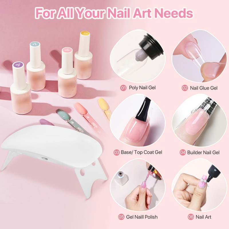 - 【Effective Cure】Equipped with 6 chips and dual 365nm + 405nm wavelengths, this UV Nail Lamp is compatible with all types of gel nail polish, including base coats, top coats, hard gels, polyurethane polish, rhinestone glue, and more. It also works perfectly for curing small DIY resin crafts, ensuring a reliable and efficient cure every time.