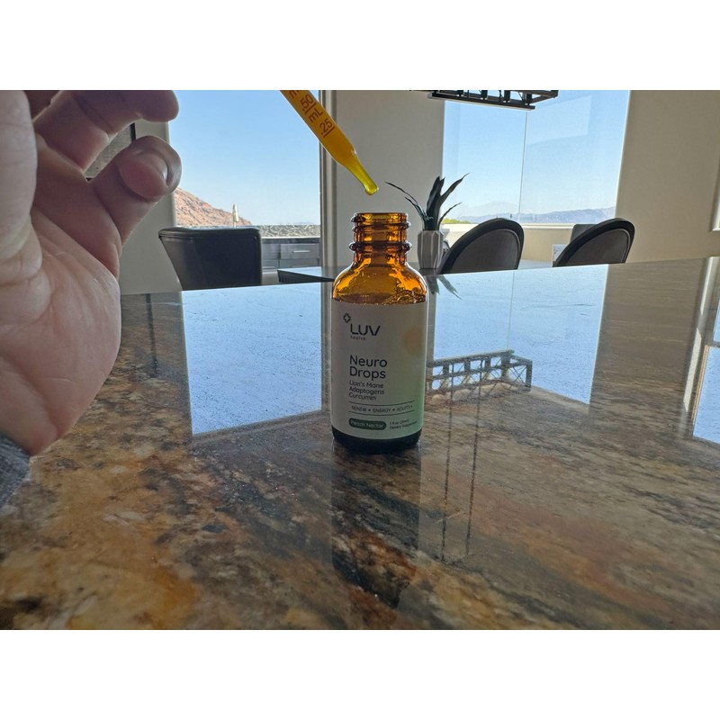 - LUV health Neuro Drops - Your go-to support for nerve and joint health, featuring USDA Certified Organic Adaptogen Mushrooms & Turmeric.