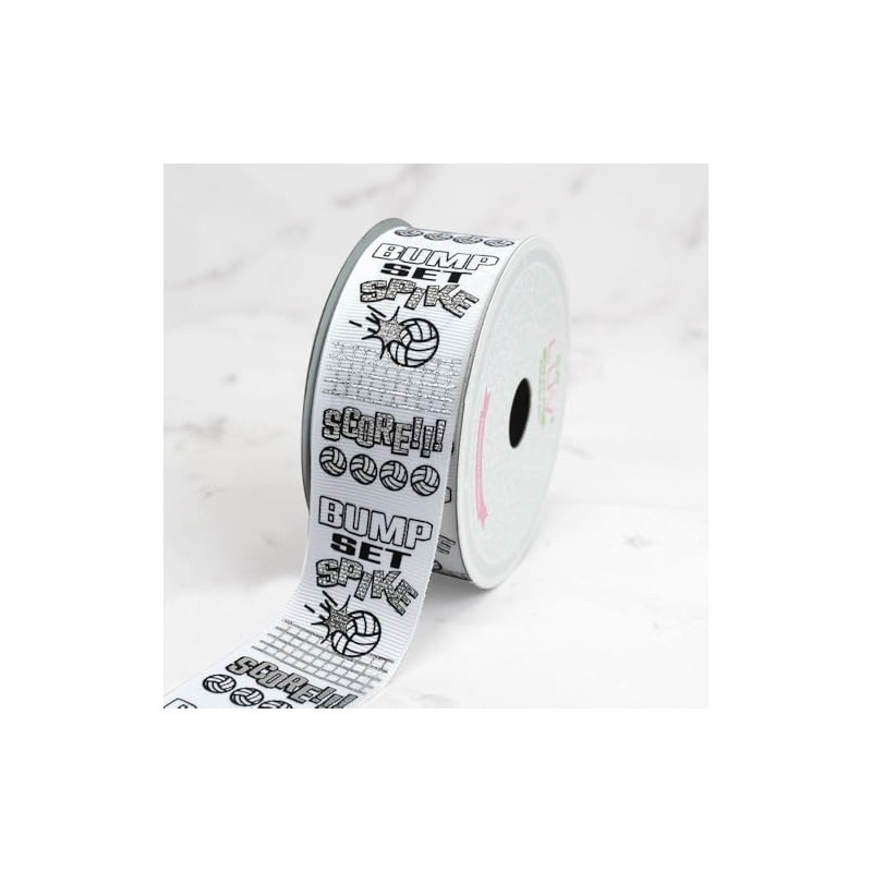 LUV Ribbon Grosgrain 1.5" Volleyball Set Bump Spike Ribbon, 10 Yards, White