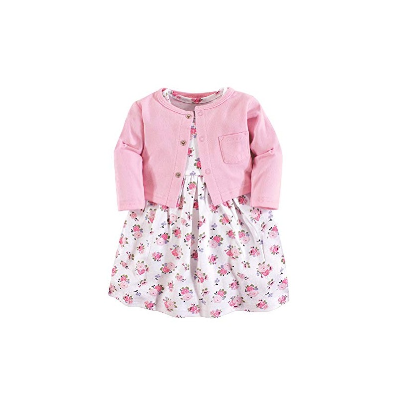 Luvable Friends baby girls and Cardigan Casual Dress, Pink Floral, 4T US