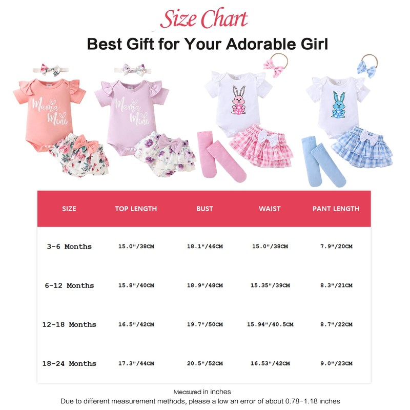 - Size note: suitable for little girls 3-18 months. Summer clothing for newborn girls 3-6 months, girls clothes 6-9 months, summer outfits for girls 9-12 years, girls 12-18 months. Please refer to our size details in the description before ordering