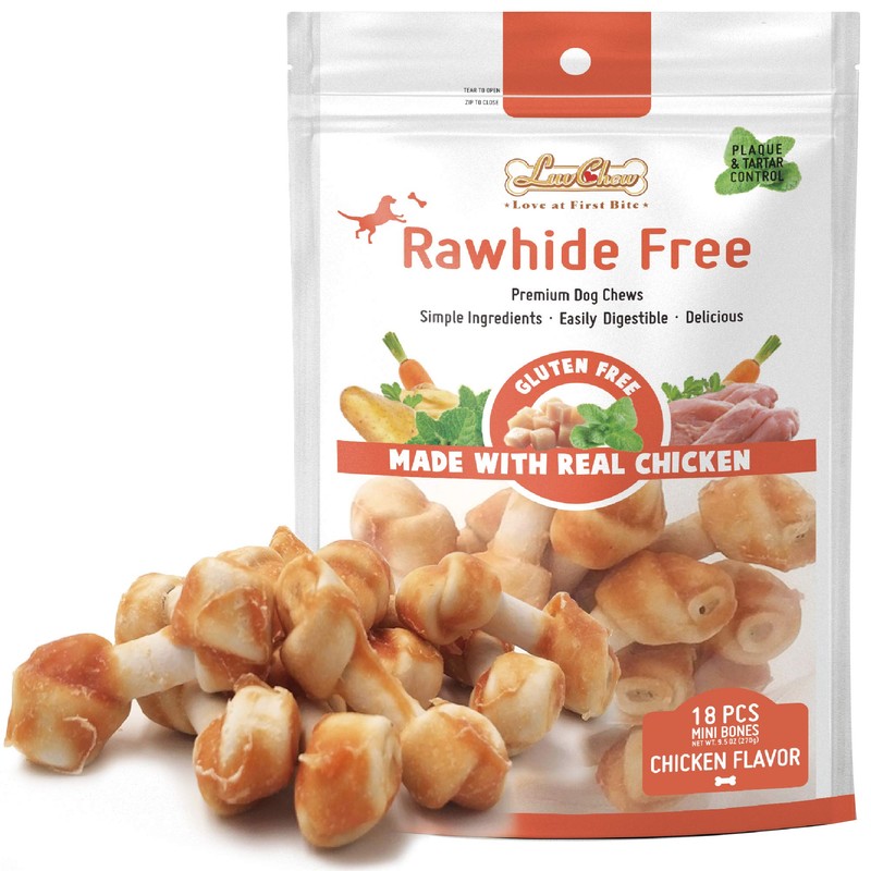 LuvChew Premium Dog Chew Bones, Made with Real Chicken, Rawhide Alternative, Made with Limited Ingredients, Highly Digestible (Mini 18pcs/Pack)