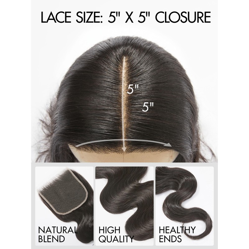 - 5x5 Free Parting: The 5x5 free parting HD lace closure offers 5 inches of lace space, allowing for versatile styling options including middle or side parts, and the ability to braid into various styles