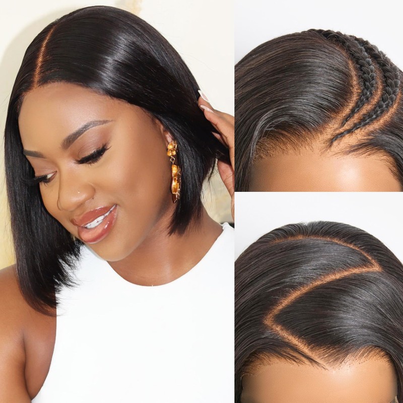 LUVME HAIR 7x6 HD Lace All-Day Comfort Wig PartingMax Lace Bob Wigs Lace Front Wigs Human Hair Pre Cut Plucked Lace Frontal Glueless 12 Inches Natural Black Color