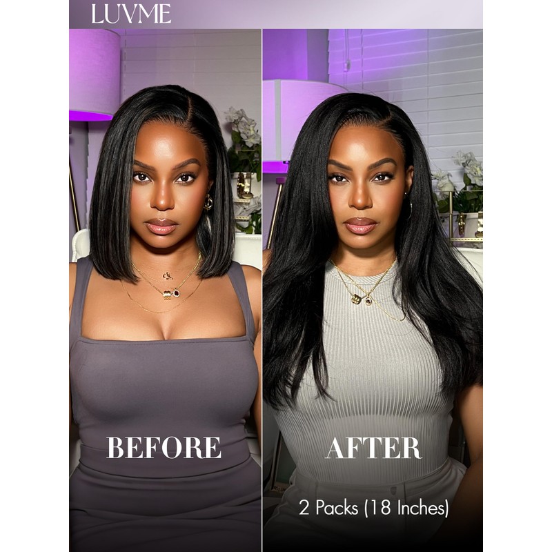 LUVME Yaki Straight Real Human Hair Tape in Extensions Natural Black 22Inch 4...