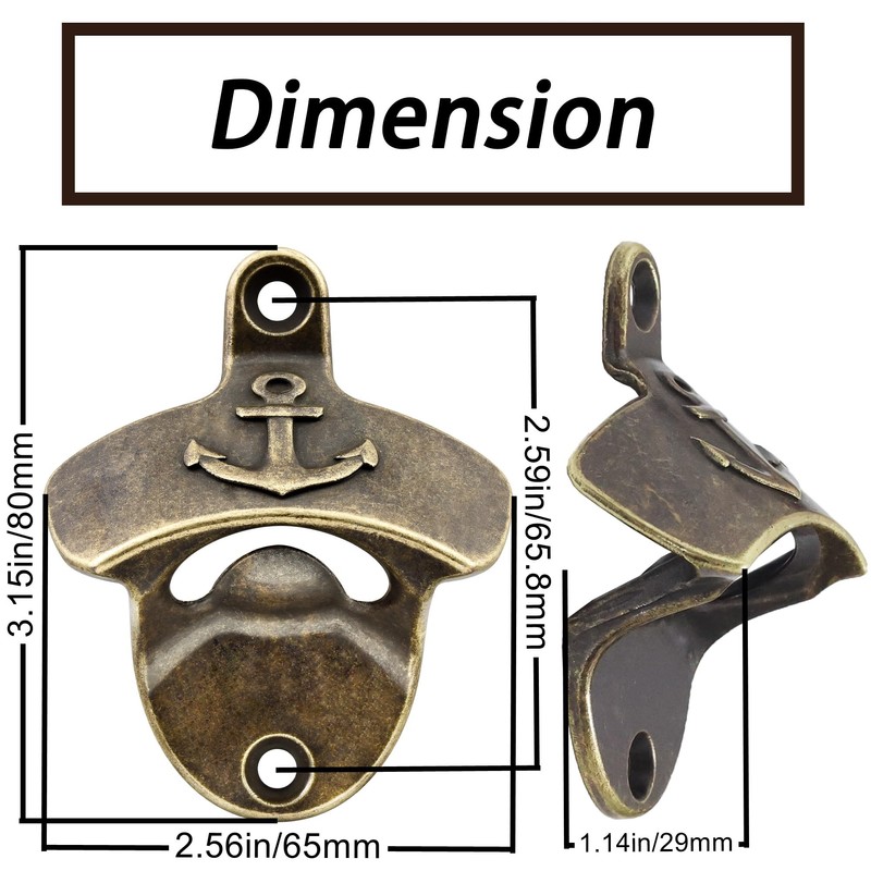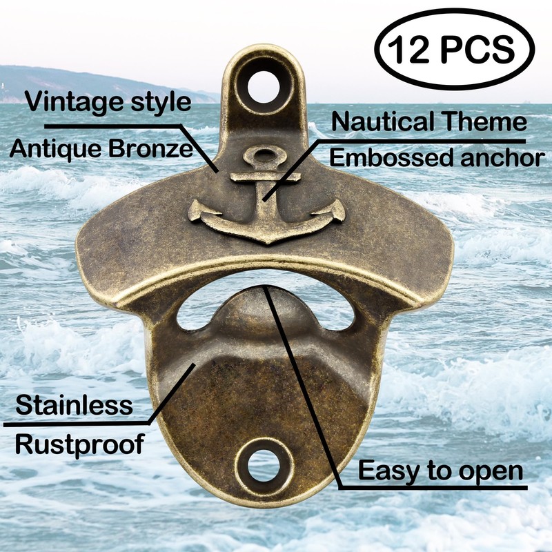 - Great Value: The packing box contains 12 pcs mountable bottle cap openers with antique stainless steel screws