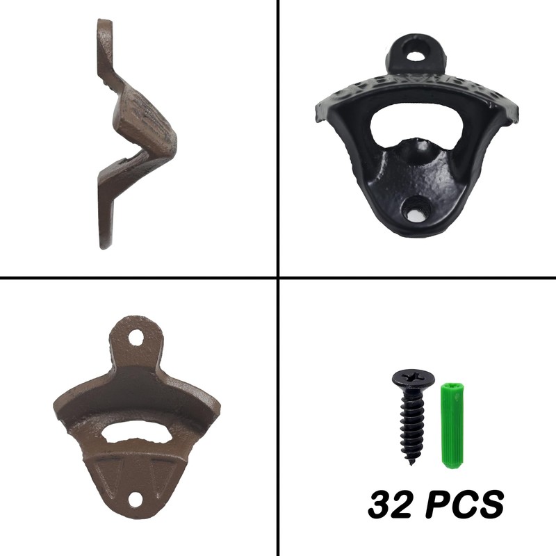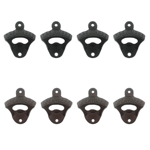 - Great Value: 8 pcs wall mount bottle opener cast iron , 4 pcs in black and 4 pcs in retro brown, with 16pcs of black strong screws