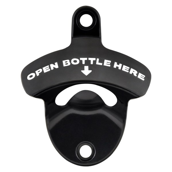 Luwanburg Wall Mounted Bottle Opener OPEN BOTTLE HERE Beer Cap Opener Mountable for Gift (Black with White)