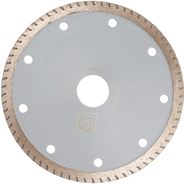 The professional disc is made of steel with diamond segments. The low processing temperature of the material protects the surrounding tile and panel material. In the centre there is a hole with a diameter of 22.23 mm for attachment to the sander. The diameter of the disc is 125 mm with a depth of 2 mm. A maximum speed of 80 m/s at 12,250 rpm (revolutions) should not be exceeded.