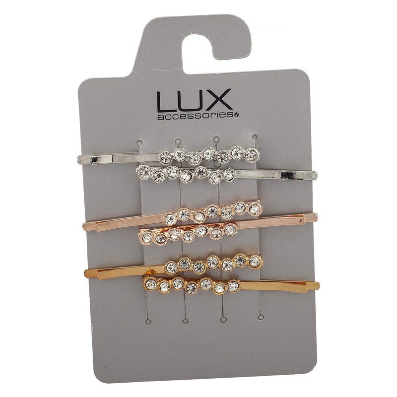 Lux Accessories Gold Rosegold Silver Set of 2 Pairs Each Colors White Crystal Rhinestones Wedding Bridal Prom Hair Pins