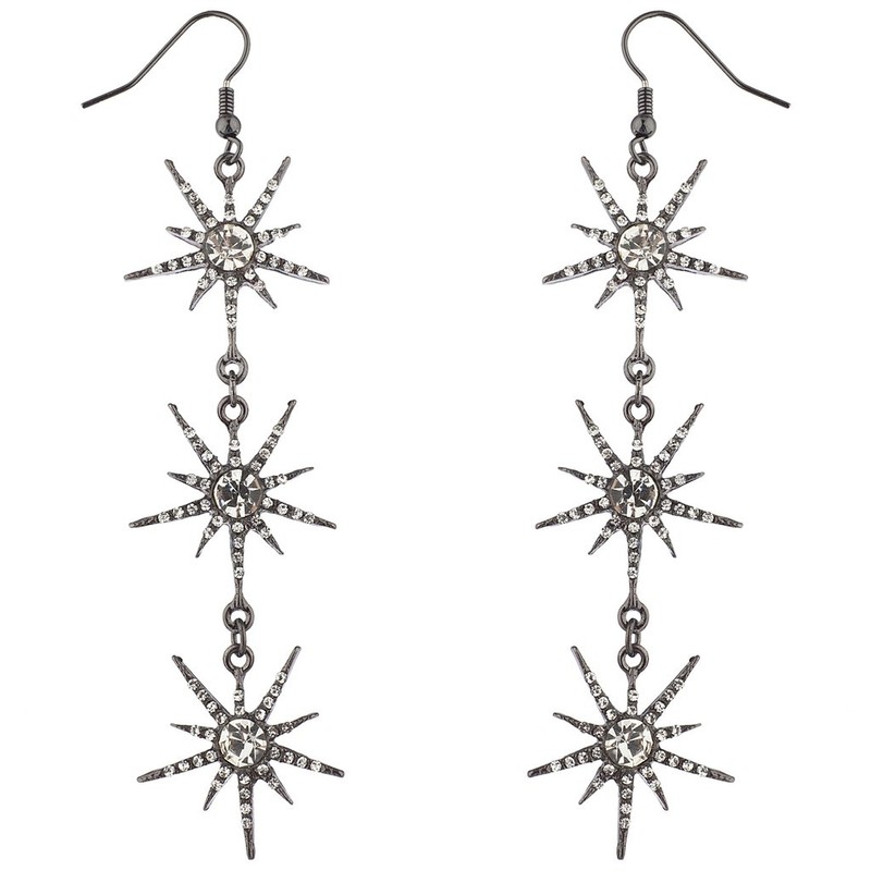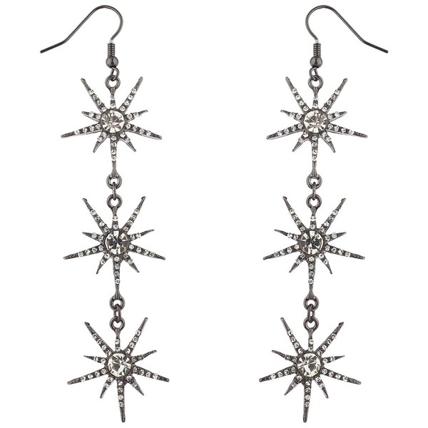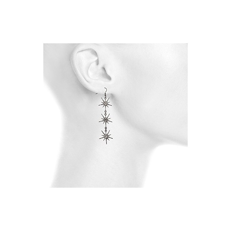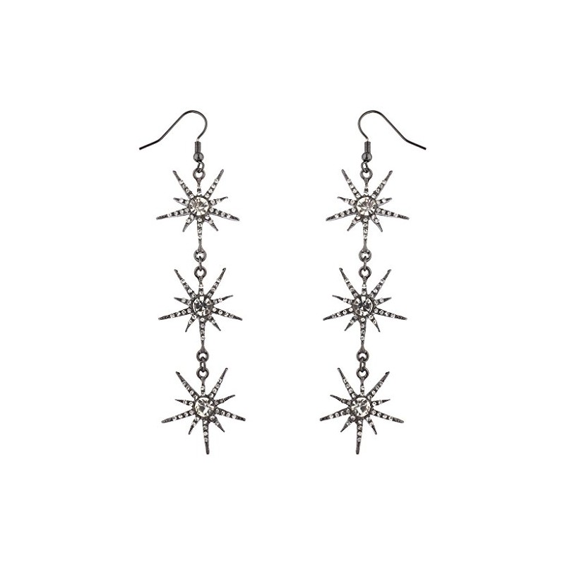 Lux Accessories Hematite Three Tier Starburst Special Occasion Dangle Earrings