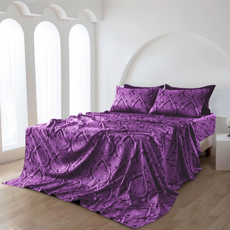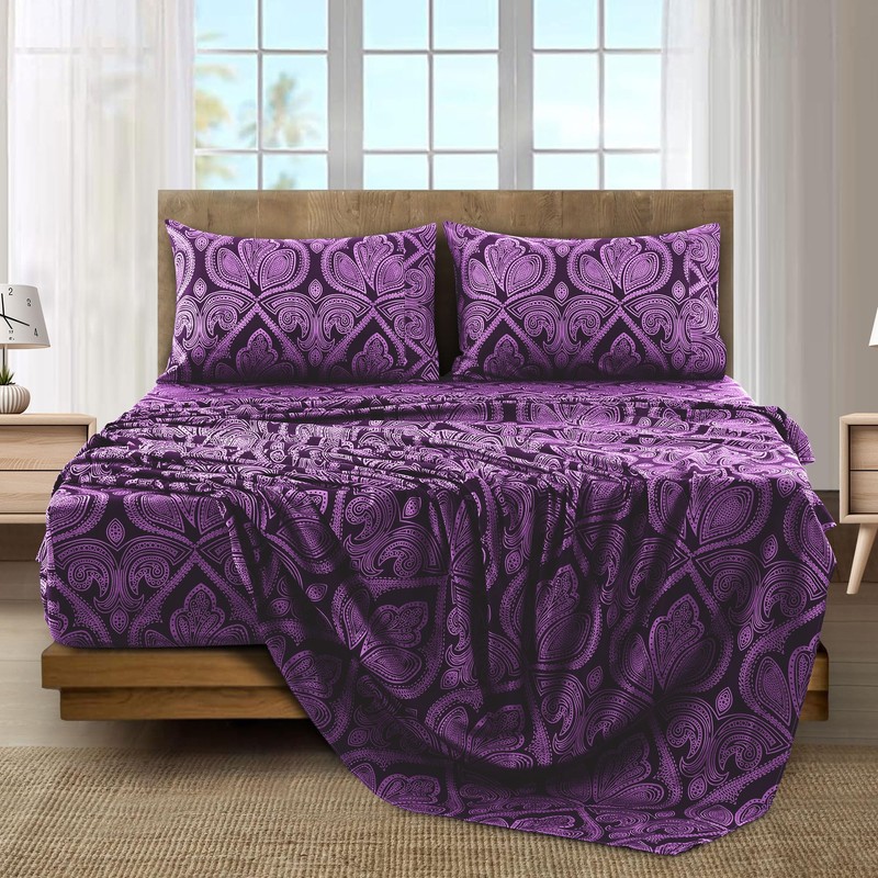 Lux Decor King Size Bed Sheets Set, 6-Pc Cooling Bed Set, Breathable Hotel Style Sheets, Microfiber Sheets Deep Pockets, Easy-Fit, Soft & Wrinkle Free Oeko-Tex Paisley Bed Sheets (King, Purple)
