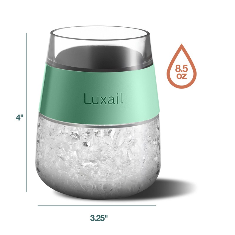 - INSULATED WALLS filled with proprietary cooling gel work as a wine chiller when frozen. Pop a plastic insulated wine glass in the freezer for white wines or cool in the fridge to keep red wines at cellar temp