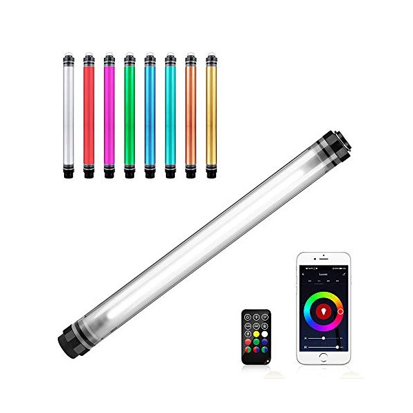 LUXCEO P7RGBPro Handheld Photography Light with APP Control 360 ° Full Color LED Video Light Wand 12 Lighting Modes,CRI≥95 IP68 Waterproof,10400mAH Rechargeable Battery 3000k 5750k RGB Colorful Stick