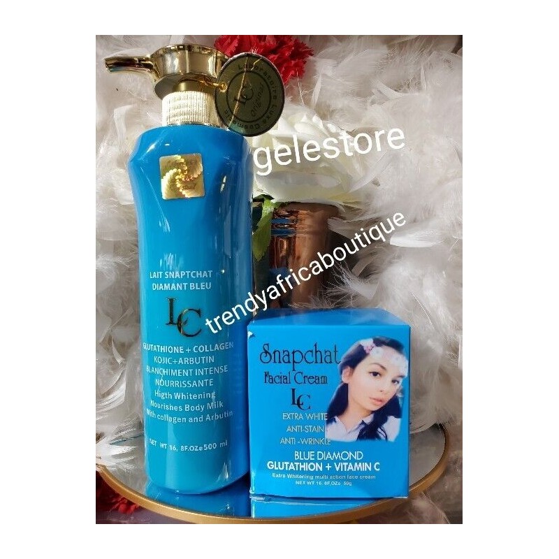 Luxe 2pcs. Snapchat Diamant blue Body lotion 500ml & Whitening Face Cream 50ml .👌