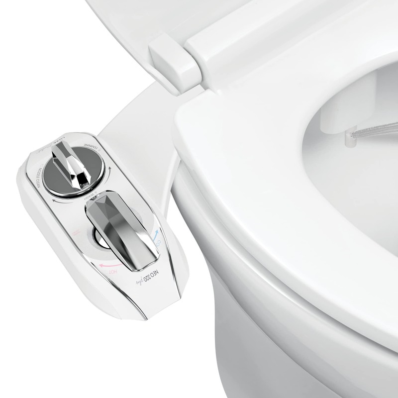 LUXE Bidet NEO 320 Plus - Patented Bidet Attachment for Toilet Seat, Innovative Hinges to Clean, Slide-in Install, Advanced 360° Self-Clean, Warm, Dual Nozzles, Feminine & Rear Wash (Chrome)
