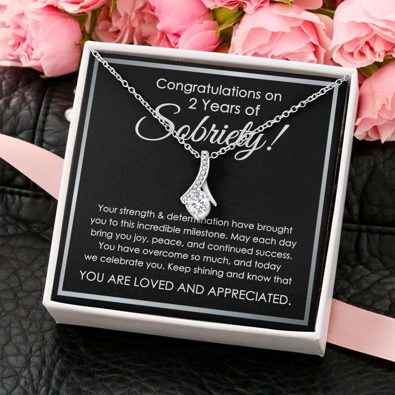 Luxe Gifting 2 Years Of Sobriety Necklace Message Card Box Alluring Standard - Congratulations On 2 Years Of Sobriety! - Milestone Recovered Celebration