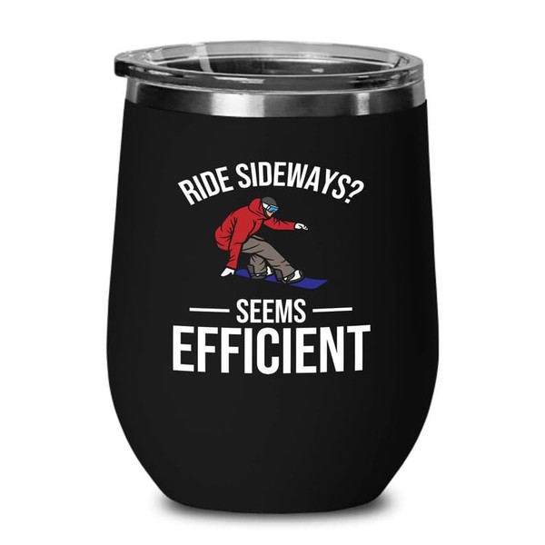 Luxe Gifting Snowboarding Black Edition Wine Tumbler 12oz - Ride sideways - Ski Snowboard Goggles Snowboarder Skiing Snowboarding Gift Skiers Hiking Mountain