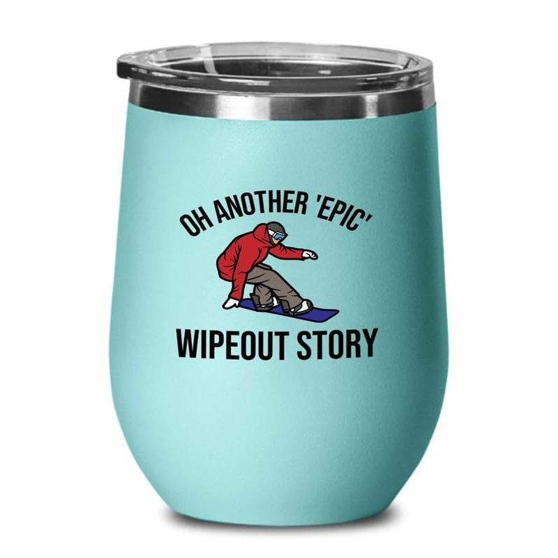 Luxe Gifting Snowboarding Teal Edition Wine Tumbler 12oz - Wipeout story. - Ski Snowboard Goggles Snowboarder Skiing Snowboarding Gift Skiers Hiking Mountain