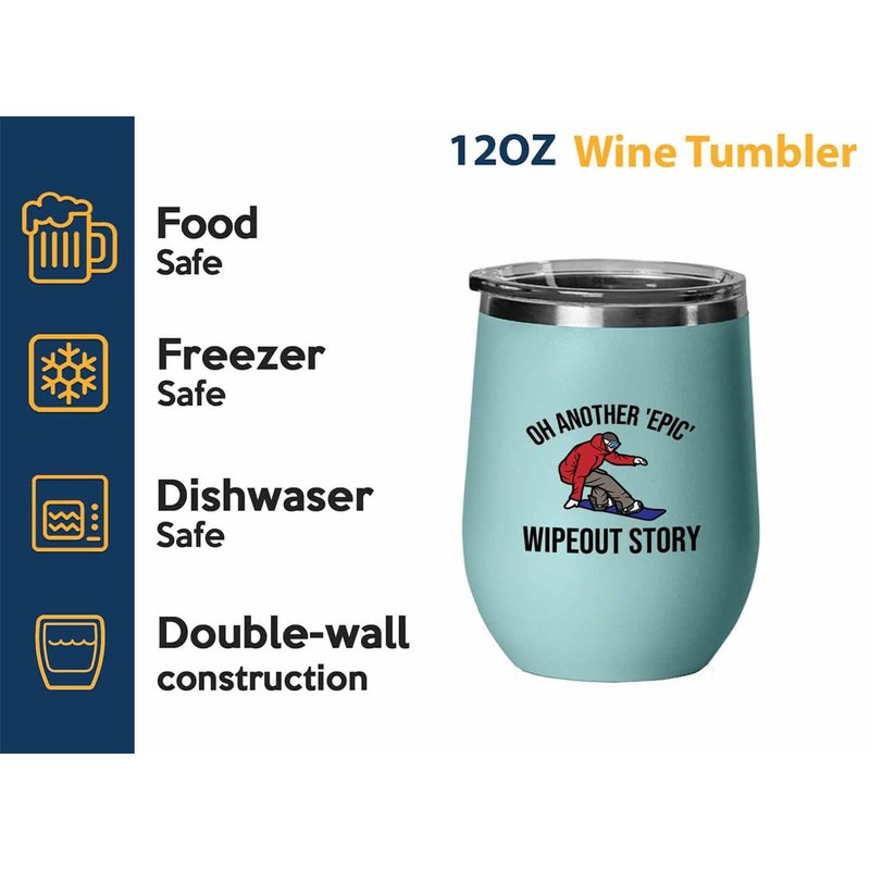 Luxe Gifting Snowboarding Teal Edition Wine Tumbler 12oz - Wipeout story. - Ski Snowboard Goggles Snowboarder Skiing Snowboarding Gift Skiers Hiking Mountain