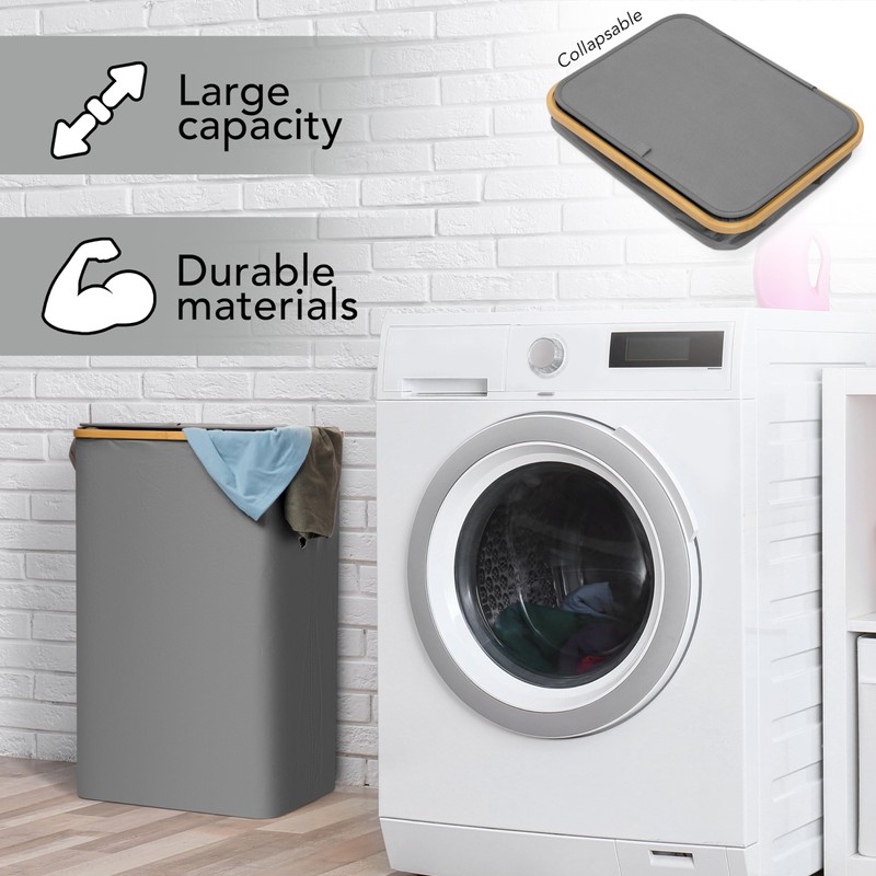 Luxe Laundry Clothing Hamper - 145L XL Laundry Basket with Bamboo Lid & Removable Inner Bag for Dirty Clothes - Free Standing, Tall, Collapsible, High-Capacity & Stylish Design Basket Bin, Gray